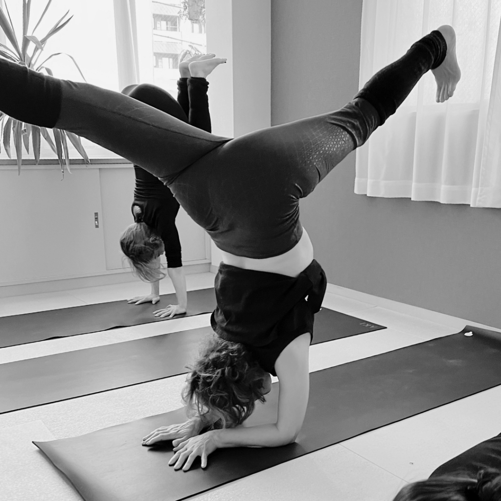 ハンドスタンドやブリッジなどのアドバンスポーズに、楽しみながら挑むクラス。